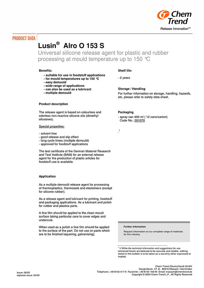 Lusn ® Alro O153S脱模剂